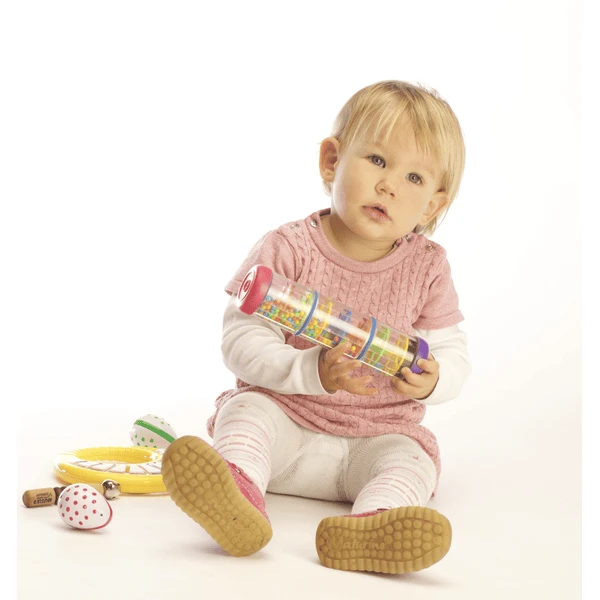Dit klankspeelgoed is afgeleid van de Rainmaker en – de naam zegt het al – laat het geluid van regen horen. Regenboogkleurige balletjes stromen bij het omdraaien de de doorzichtige buisjes. Dat klinkt niet alleen mooi, maar zorgt ook voor veel pret tijdens het spelen en toekijken.