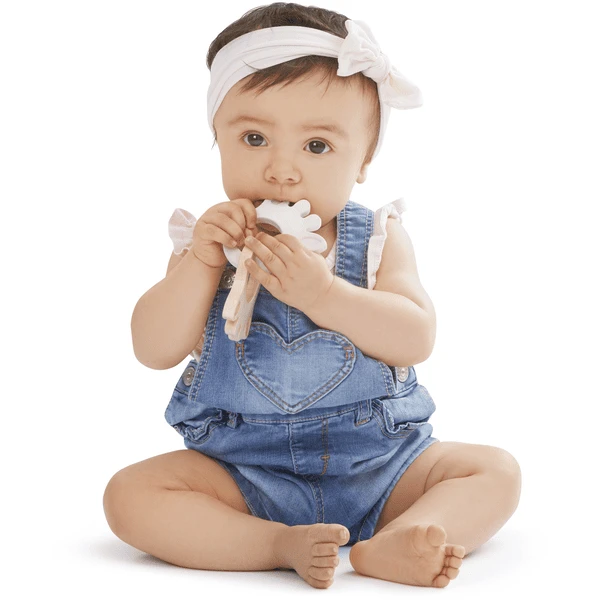 WAARSCHUWING: Verwijder alle verpakking en bevestigingen vóór gebruik. Inspecteer het product zorgvuldig voor elk gebruik, vooral als het kind al tanden heeft. Trek aan het product in alle richtingen. Gooi het weg zodra de eerste tekenen van beschadiging of slijtage zich voordoen. Niet blootstellen aan direct zonlicht en uit de buurt van warmtebronnen houden.