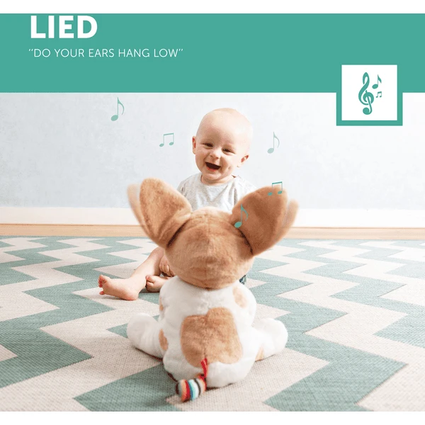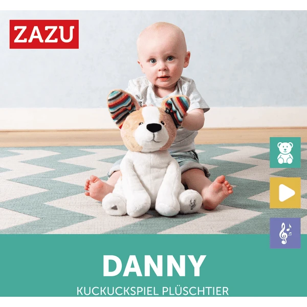 Je kind zal het geweldig vinden en proberen Danny te imiteren. Druk op de linkervoet en Danny speelt het liedje ‘Do your ears hang low’ en wiebelt zijn oren op het ritme van de melodie. Druk op de rechtervoet, dan begint Danny het koekoekspel te spelen door zijn ogen te bedekken en te zeggen: ‘Waar ben je…? Peek-a-boo, ik zie je’.